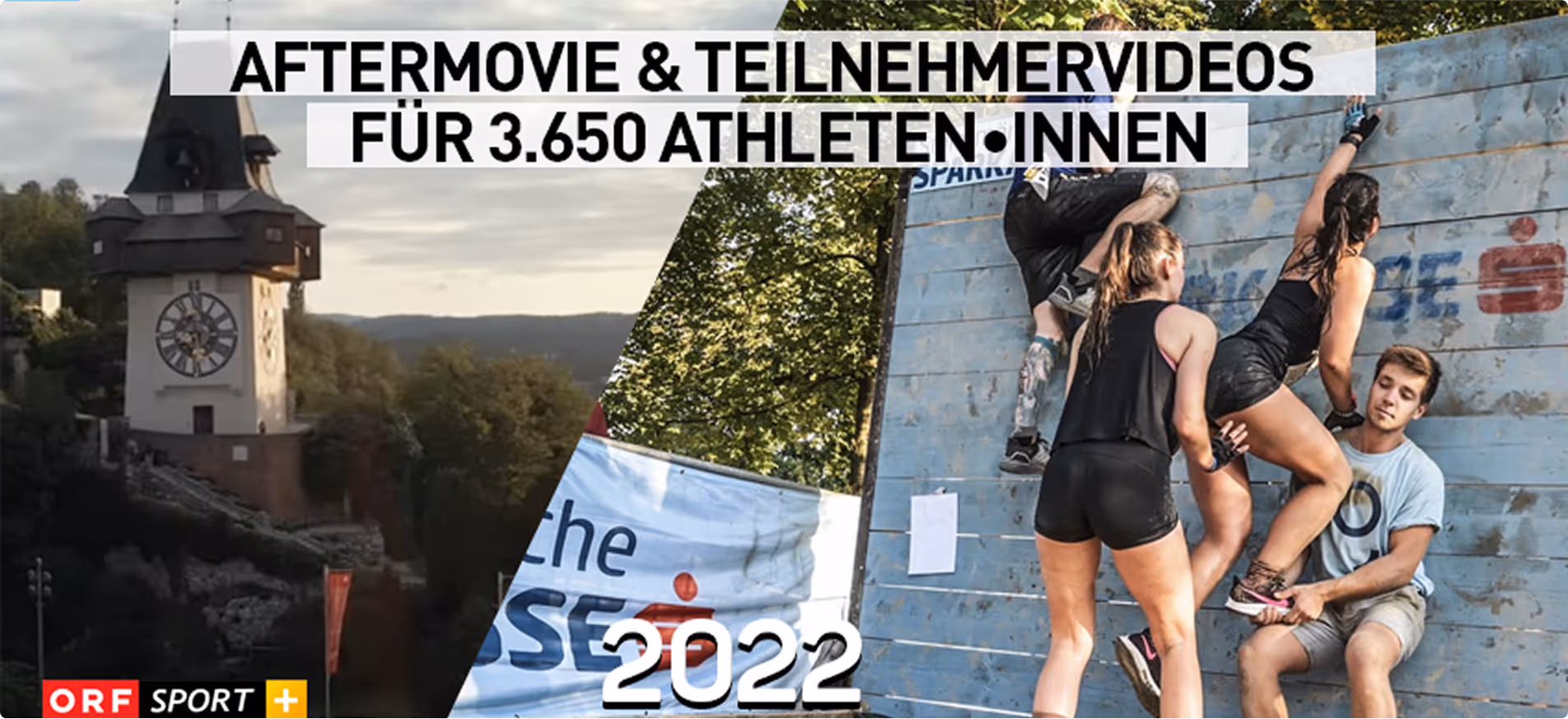 Since 2018, participant videos have been available in Austria exclusively from the Groox Film Agency. They were delighted when they decided, together with Steiermärkische Sparkasse, to premiere the video at one of Styria's premium events: the Grazathlon. As always, a lot was produced this year. Highlights after the finish, an aftermovie within 24 hours after the finish, and a 15-minute ORF SPORT+ report were just the basic deliverables this year. Our video team got started on Friday with the pre-shoot with our “Groox Beat the City” team. Nadine, Arvid, and Evelyn were already with us at the Linzathlon. After an injury-related cancellation, Andy stepped in at the last minute for the Grazathlon and joined the team for the first time during the final training session at VIBES Outdoor Fitness. Martin, a trainer at VIBES Fitness, gave the ORF-SPORT+ TV crew some final tips for Saturday's race on Friday afternoon and showed our newbies a few tricks for the obstacles. Cameraman Clemens filmed a few scenes for our aftermovie.